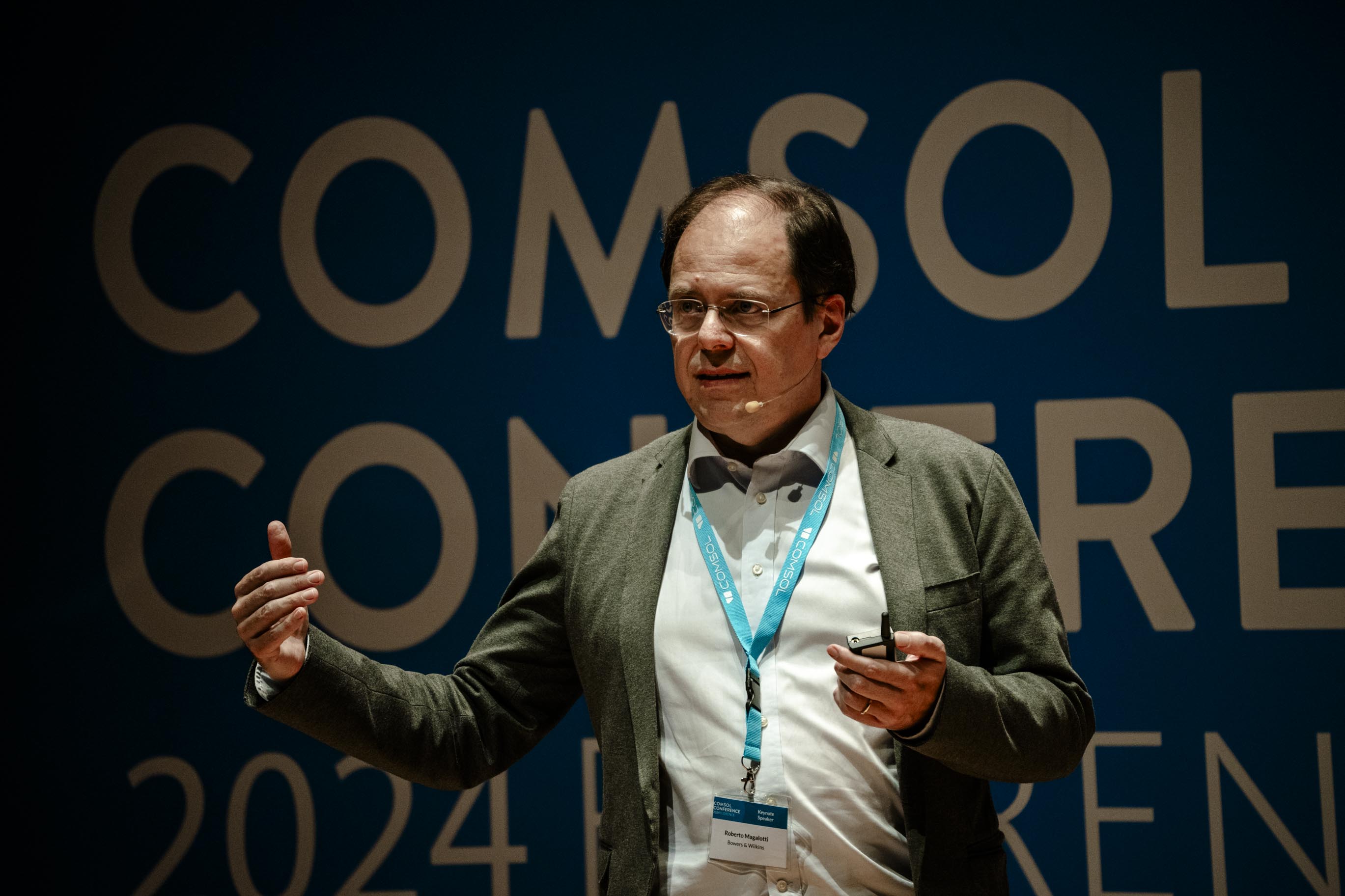 Engineers and researchers from industry and academia gathered at the COMSOL Conference 2024 Florence to meet in person, exchange ideas, and gain inspiration from each other. Through keynote talks from industry leaders, presentations by invited speakers, and 120 posters on display, attendees learned how modeling and simulation is being used in the automotive, food & beverage, semiconductor manufacturing, and electronics industries, among many others. Here are the highlights from the COMSOL Conference 2024 Florence, including a photo gallery at the end of the blog post!